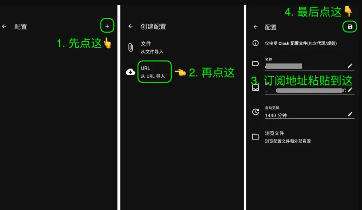 2. 如果没有成功添加新配置,可以再试一次,或者尝试备用步骤:复制订阅,手动导入节点订阅。