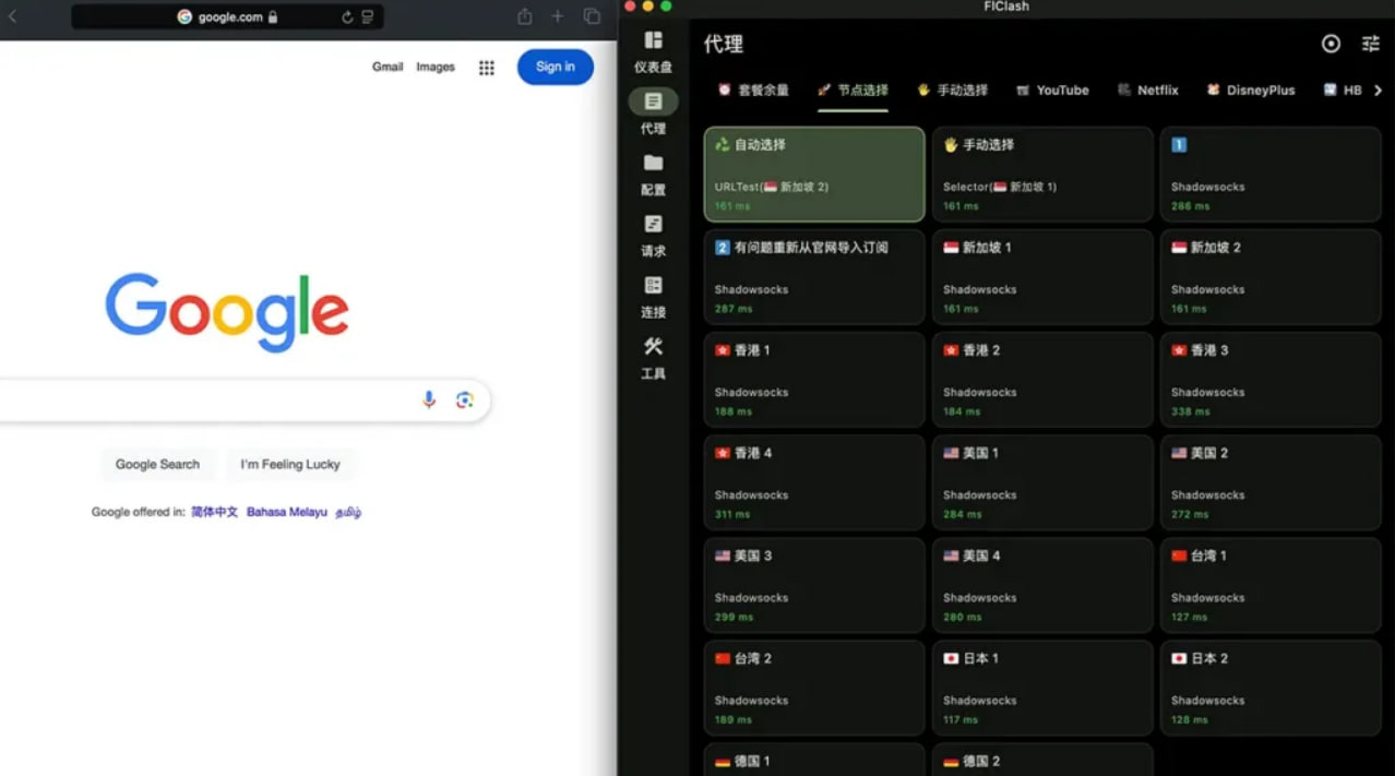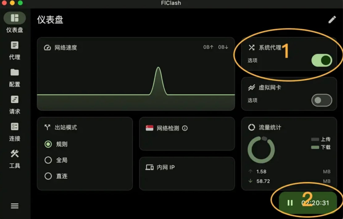 FlClash Windows和Mac版界面和操作完全一样,效果如上,教程如下。不知道安卓版FlClash怎么用的朋友,可以参考 Clash for Android使用教程,流程基本一致。